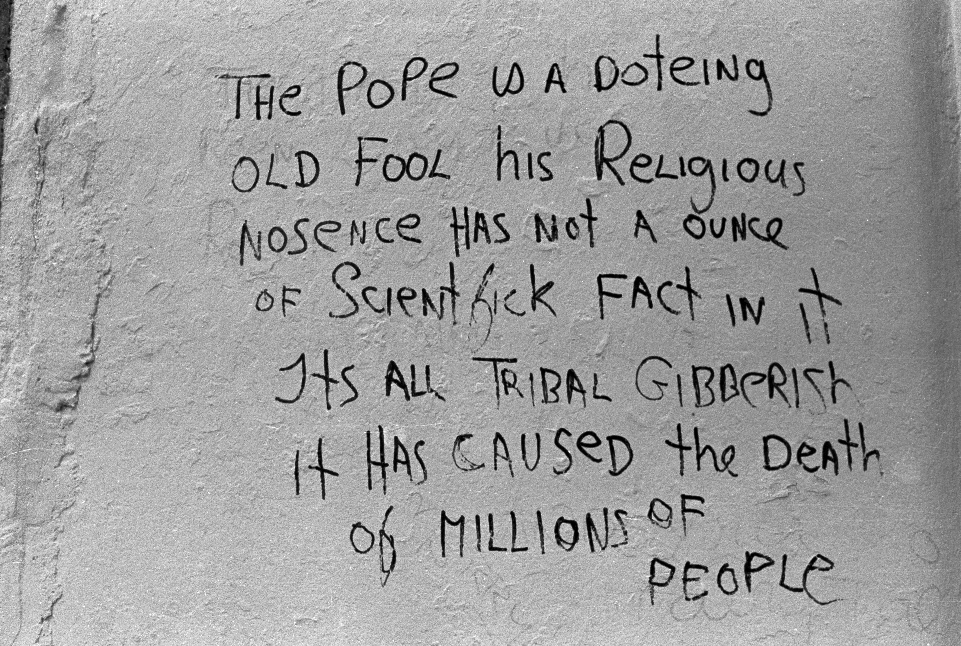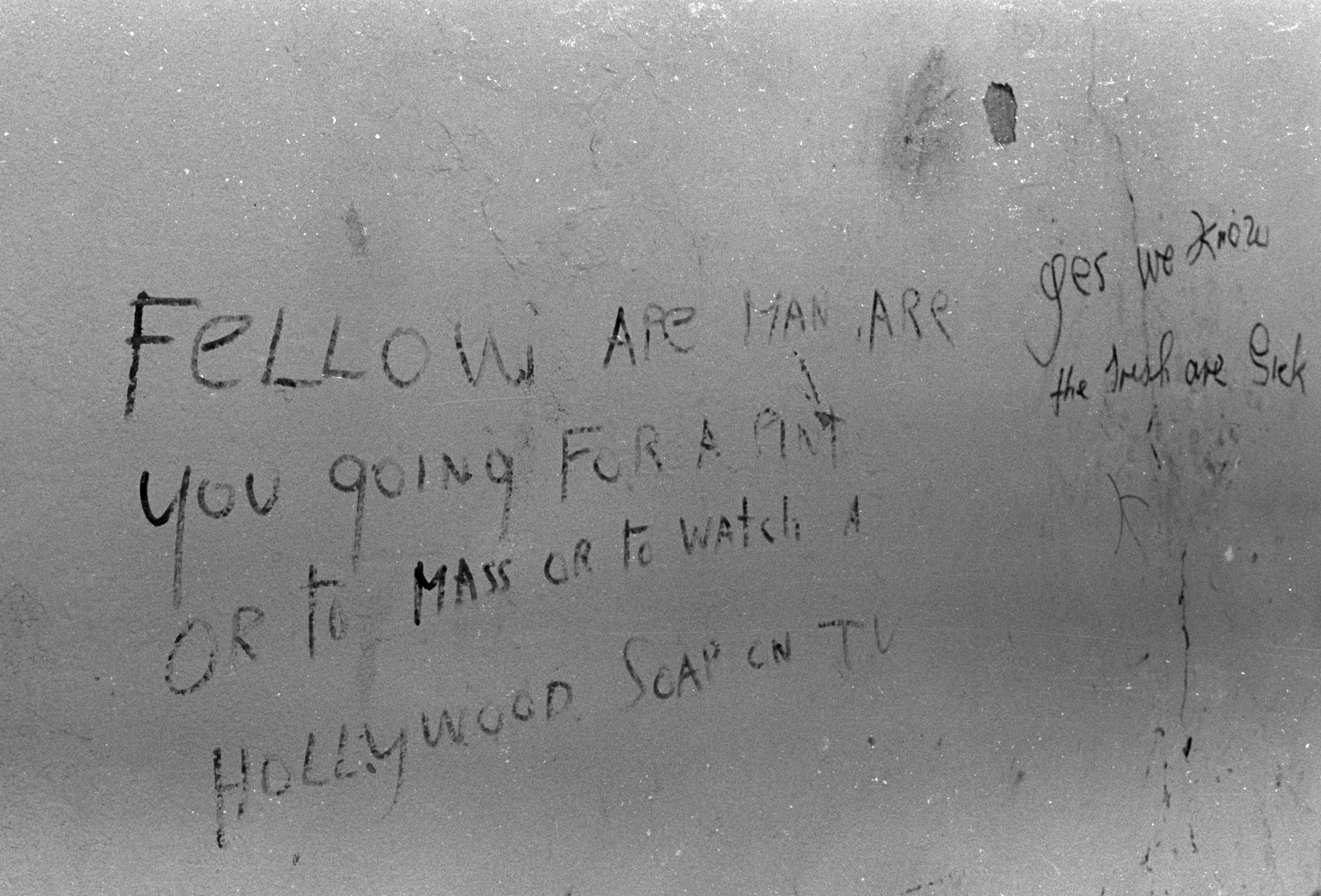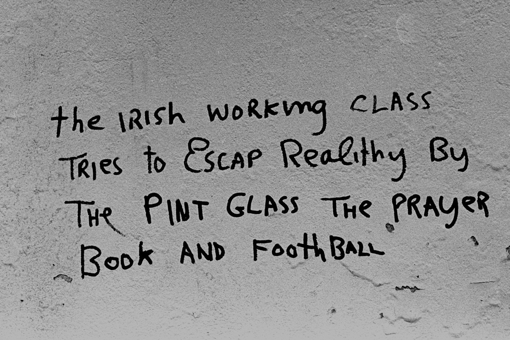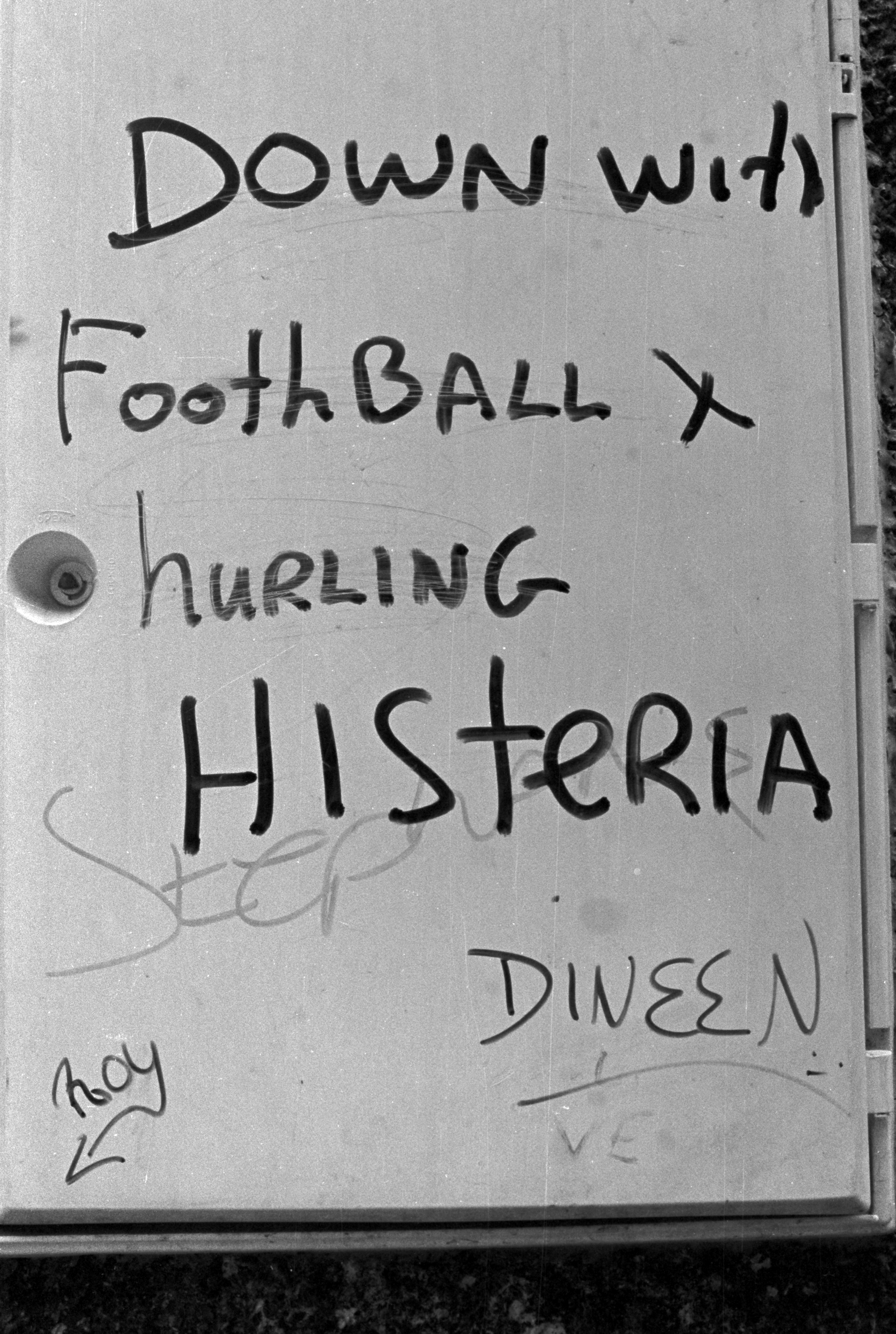 Twitter gave everyone a platform in 140 characters. Years before, Facebook had given people a wall. Before social media, short messages on real walls had a local audience and little influence. This series documents an anonymous poster using the walls of Cork City during the optimisitc years of the Celtic Tiger,