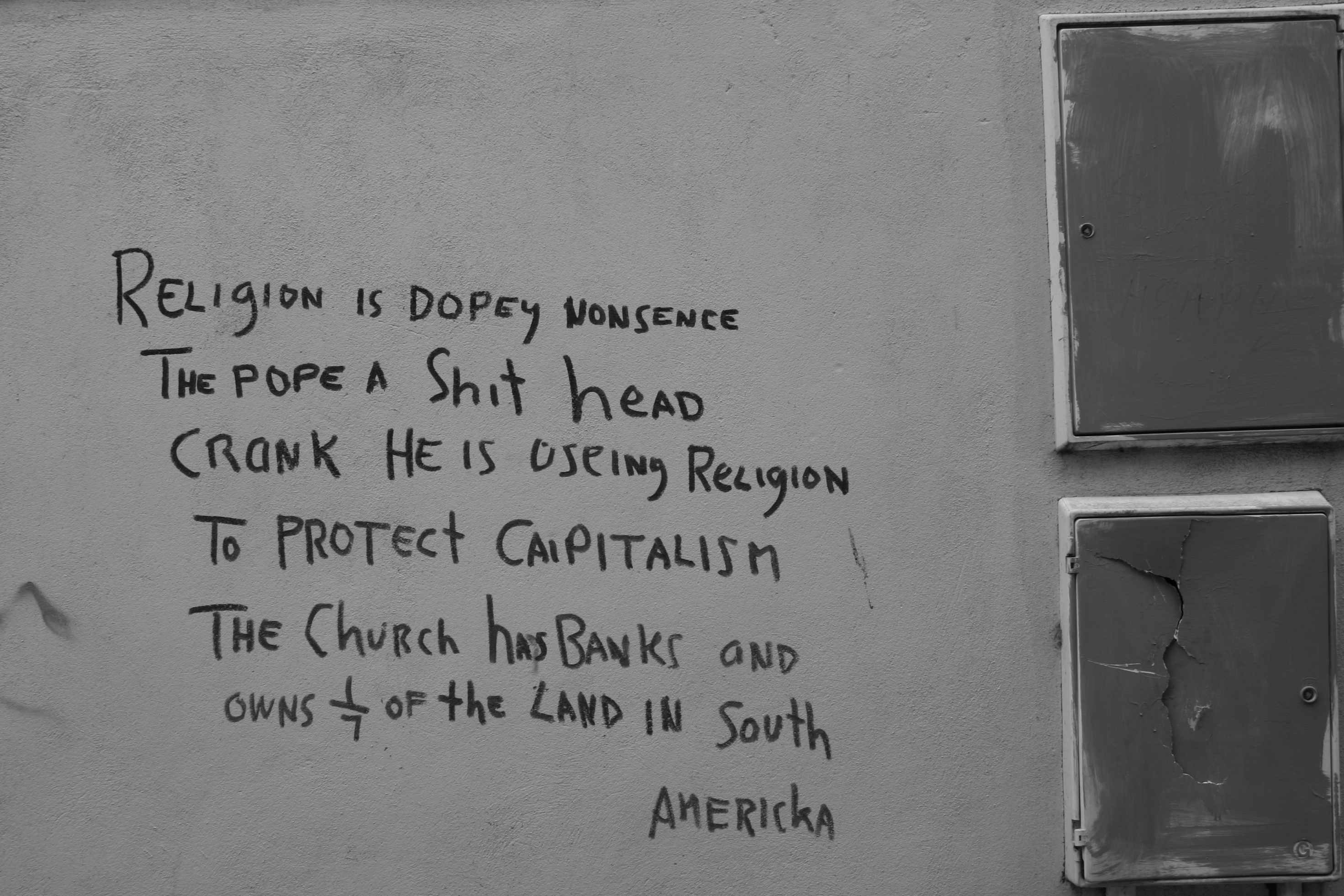 All the graffitis appeared randomly on the North side of the City, from Sunday’s well to St Luke’s, via Blackpool.